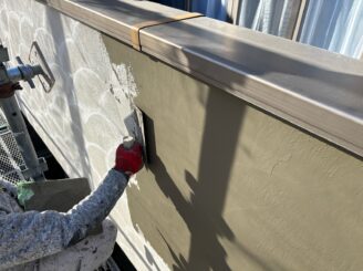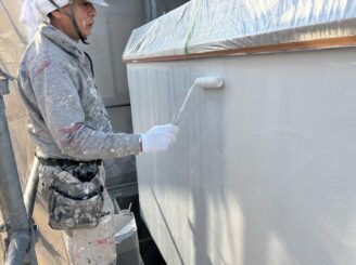 施工事例 浜松市中央区|呉松町 K様邸|外壁塗装|2025年1月完工 カテゴリー 外壁塗装 リフォーム相談会 完成写真に対するひとこと 外壁には アステックペイント 超低汚染リファイン艶消1000MS-IR(T-1000近似色) を使用しました。 艶消し仕上げで、落ち着きのあるやわらかな印象に。 汚れが付きにくい低汚染塗料のため、美しさが長持ちします。 東面は ジョリパットフレッシュ∞ JQ-820 で施工。コテ仕上げで立体感をプラスしました。 T-1000カラーで統一し、 上品で表情のある外観へと生まれ変わりました。 プラン内容 価格 外 壁 メーカー アステックペイント、アイカ工業 使用塗料 超低汚染リファイン艶消1000MS-IR、ジョリパットフレッシュ∞JQ-820 施工前 ■高圧洗浄 ■シーリング作業 既存シーリング撤去シーリングプライマーシーリング充填シーリング充填シーリング押さえシーリング押さえ ■外壁下地処理 ■外壁下塗り ■外壁中塗り ■外壁上塗り ■付帯部/下地処理 ケレン作業ケレン作業ケレン作業錆止め錆止め錆止め ■付帯部上塗り 前の施工事例 一覧に戻る